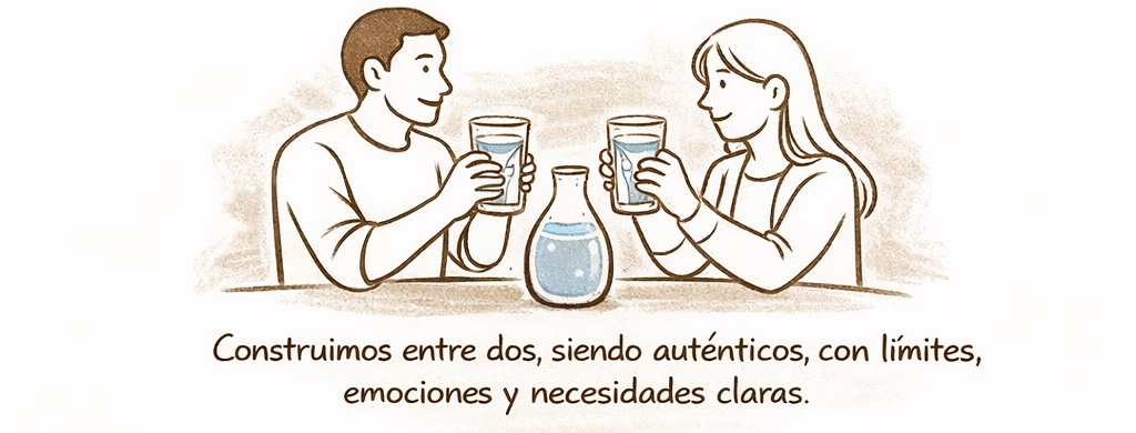 Una relación sana no nos debe exigir anularnos para sostener el vínculo. Debemos ser dos vasos de agua, desde la individualidad para llenar la vasija de nuestra relación, ambos invirtiendo la misma cantidad de agua. Por lo tanto, construimos entre dos, siendo auténticos, con límites, emociones y necesidades claras.